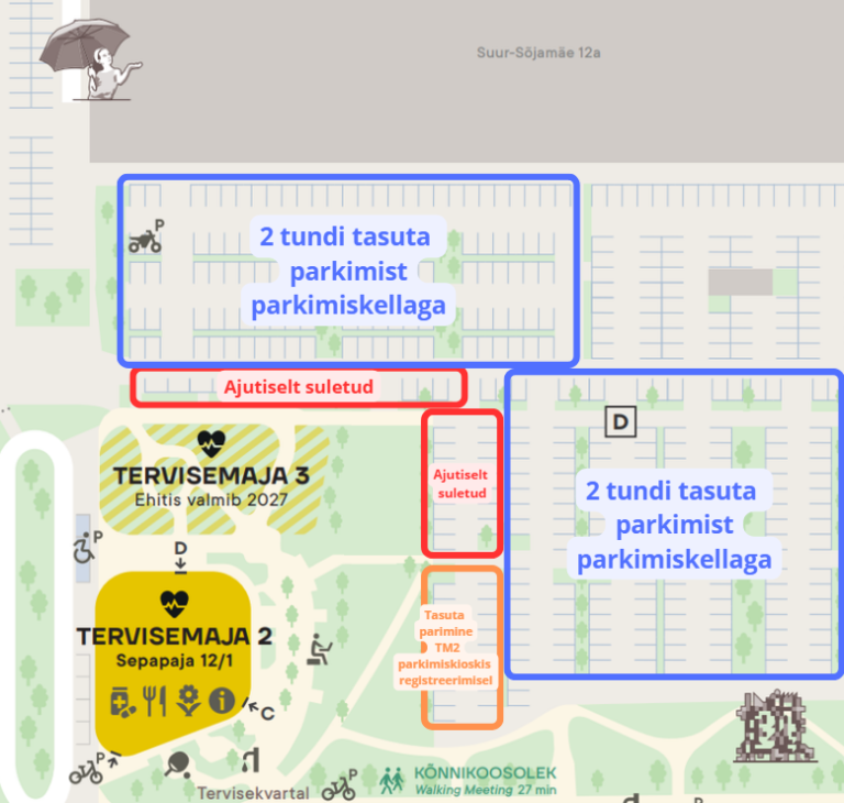 - Tervisemaja 2-le on lähimad D- ja B-parklad.